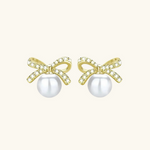 MALTA Øreringer kombinerer en skinnende gylden sløyfe med en klassisk perle, og tilfører tidløs eleganse til ethvert antrekk.