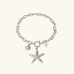Møt Atlantis Gull Armbånd, et vakkert smykke inspirert av havets magi. Dette delikate armbåndet har tre fantastiske anheng: en sjøstjerne, et skjell, og en sødvannd perle, som sammen fanger havets skjønnhet.