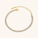 Florabelle Armbånd - Stabel det eller bruk det alene! Dette armbåndet fanger blikk med sin elegante gullbase og to rader med krystaller, som gir umiddelbar eleganse til ditt utseende.
