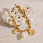 Oppdag AVARIAs Lilianne armbånd! Det perfekte tilbehøret for havdrømmere! Dette elegante gullkjedearmbåndet kombinerer ferskvannsperler med sjarmerende sjøinspirerte anheng, og gir et smykke som er både elegant og morsomt.