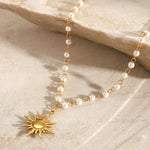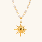 Oppdag en uanstrengt glød med AVARIAs Apollo. Denne vakre smykkedesignen kombinerer en varm solpendant med etiske ferskvannsperler for perfekt glans.