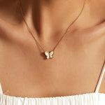 Legg til et preg av eleganse med AVARIA's Flutterby Perle av Mor Skjell Halskjede. Dette sommerfuglformede anheng, dekorert med ferskvannsperler, gir en grasiøs sjarm som hever ethvert antrekk.