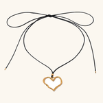 Oppdag AVARIAs Francine! Dette unike smykket kombinerer et frittstående gullhjerte med et elegant svart tau, og gir et friskt, moderne utseende som passer perfekt til både formelle og uformelle anledninger.