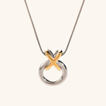 Oppdag AVARIA's Mirabelle – en frisk ny vri på tidløst minimalistisk design. Denne to-fargede hoop anheng henger elegant fra en glatt, polert kjede, og tilfører karakter og volum til ethvert antrekk.