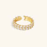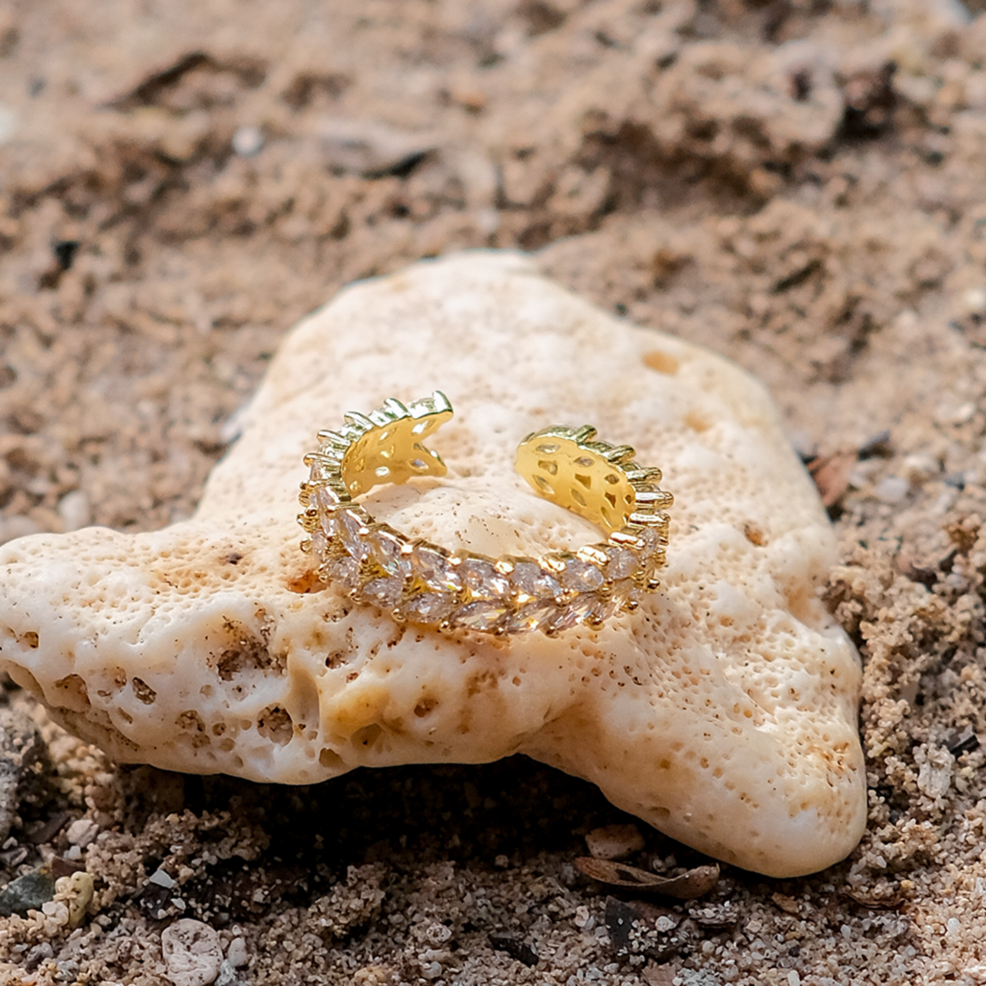 Clarisse er et elegant og sofistikert smykke som tilfører sjarm til ditt utseende. Denne gullringen med åpen design er prydet med AAA imitasjoner av diamanter som glitrer som ekte diamanter.