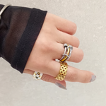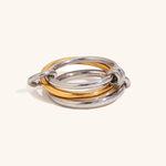 Moderne minimalisme med glans! Avaria's Gabriela ringstabel kombinerer rene linjer med en subtil blanding av gull og sølv, og gir et sofistikert preg til ethvert antrekk.
