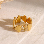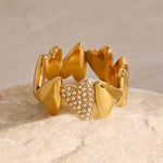 Fordi ett hjerte ikke er nok! AVARIAs Ciel Ring omfavner fingeren din med en elegant sirkel av gyldne hjerter, og den med diamanter er virkelig en showstopper. Denne ringen er vanntett og hypoallergenisk, designet for å forbli fantastisk uansett anledning.