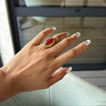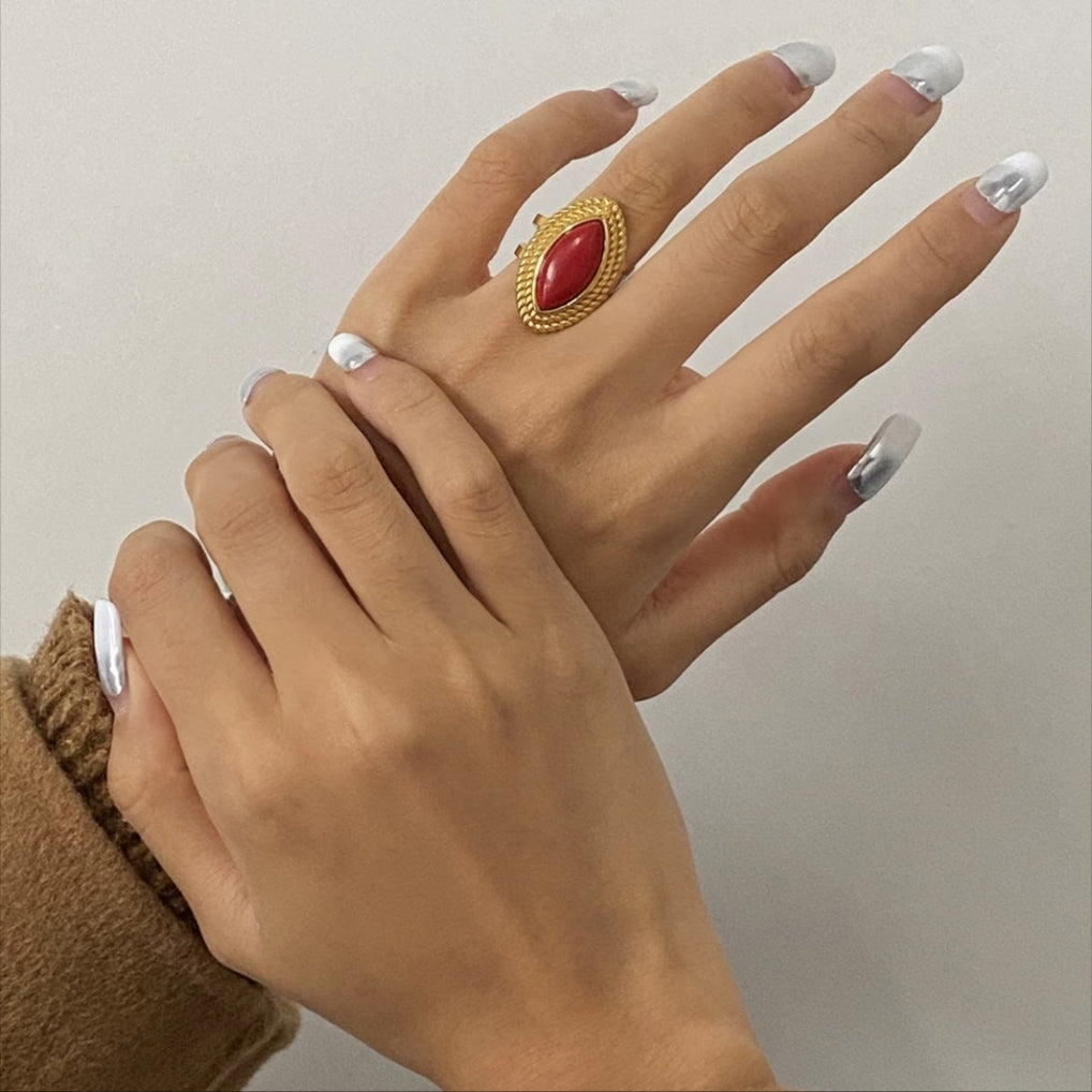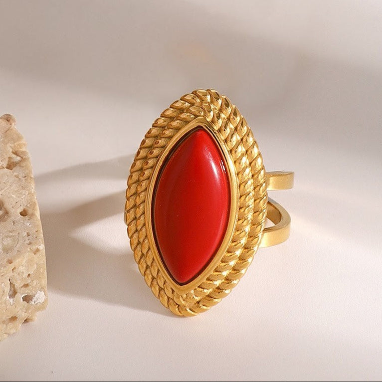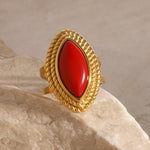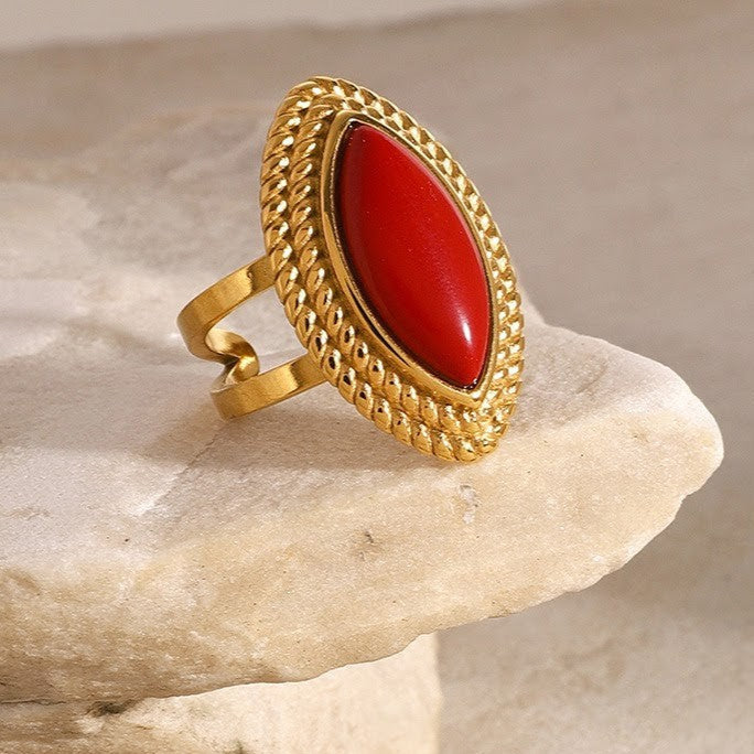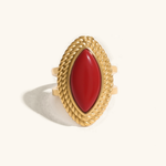 Oppdag AVARIA's Heidi: En iøynefallende ring med marquise-fasade, innrammet av en detaljert gullinnstilling som tilfører vintage-inspirert eleganse til din smykkesamling.