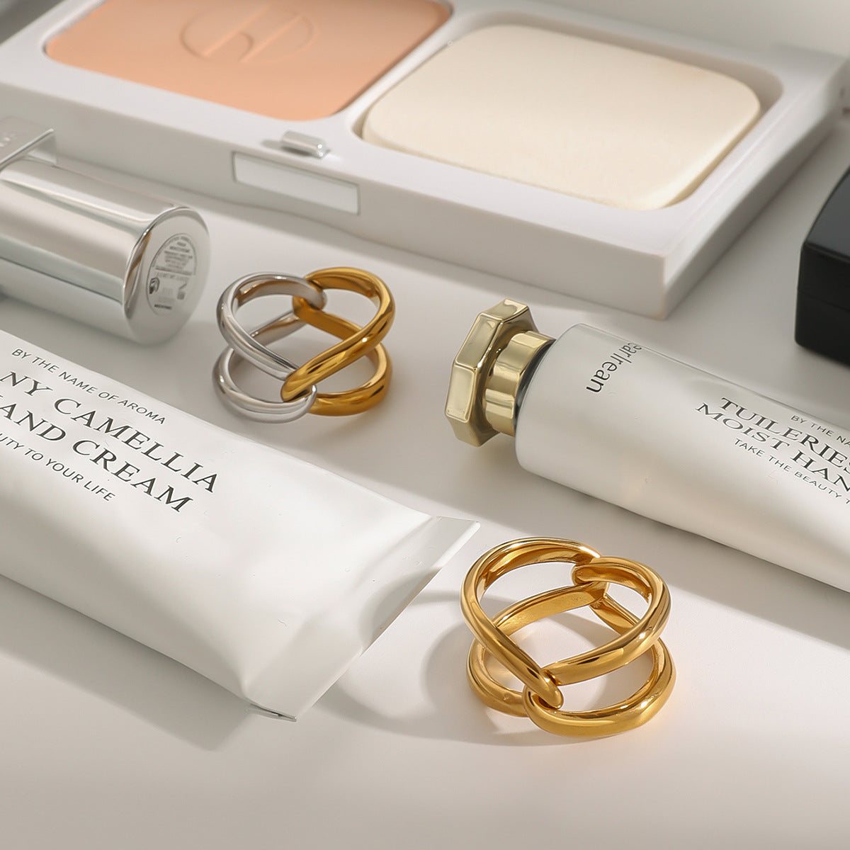 Oppdag AVARIAs Nerine: Den perfekte kombinasjonen av minimalisme og stil. Med sitt sammenflettede gullbånd gir denne ringen en skulpturell vri som fanger blikket.