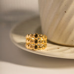 Oppdag Remy Gullringen, et fengslende smykke med intrikate sirkulære mønstre som danner et åpent bånd. Dette mesterverket kombinerer ukonvensjonell stil med tidløs eleganse, perfekt for enhver antrekkskombinasjon.