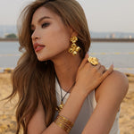 Gi et preg av vår til hverdagsstilen din med Saisore Gullring. Dens åpne blomsterdesign minner om blomstrende hager og tilfører et snev av naturlig skjønnhet til ethvert antrekk.