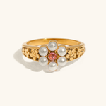 Oppdag AVARIAs Thalia-ring, et smykke som blomstrer med vintage sjarm. Ferskvannsperler er elegant satt inn i et gullblomsterdesign, som gir en klassisk følelse til enhver anledning.