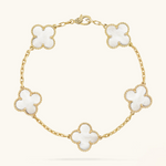 Clover Collection Armbåndet er et tidløst smykke med et delikat design, prydet med tre symboler som gir et subtilt, men elegant preg til håndleddet ditt. Dette armbåndet er laget av høykvalitets rustfritt stål belagt med 18-karat gull, og er både nikkelfritt og hypoallergent for optimal komfort.